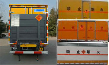 | 其他 | 該車適用于運(yùn)輸危險(xiǎn)品。廂體頂部封閉,不可開啟。該車主要用于運(yùn)輸獨(dú)立容器包裝的介質(zhì):黑火藥,壓縮黑火藥,電引爆雷管,爆破炸藥,專用煙火制品。運(yùn)輸介質(zhì)類項(xiàng)號:1.1D,1.1D,1.1B,1.1D,1.1G。安全裝置為導(dǎo)靜電帶,用于防止靜電。防護(hù)材料:Q23碳鋼,連接方式:左右側(cè)面及后下部防護(hù)均采用焊接連接,后部防護(hù)斷面尺寸(mm):100×50,后部防護(hù)離地高度(mm):450。僅采用底盤子午線輪胎和帶ABS的底盤,該車前輪安裝盤式制動(dòng)器,前置排氣管,裝配限速裝置,限速80km/h。安裝帶有衛(wèi)星定位功能的行駛記錄儀。ABS系統(tǒng)型號:APG3550500A,ABS系統(tǒng)生產(chǎn)廠家:浙江亞太機(jī)電股份有限公司。油耗對應(yīng)關(guān)系(L/100km):11.9(JX493ZLQ5),11.9(JX493ZLQ)。隨底盤選裝駕駛室。可選擇開百葉窗,選裝側(cè)門型式及位置,選裝后部液壓尾板。可選裝不開側(cè)門時(shí),整車寬為1950mm。后部液壓尾板收起狀態(tài)長度是250mm。危險(xiǎn)貨物運(yùn)輸車輛的類型(EX/Ⅱ型車輛型車輛)。 | ||