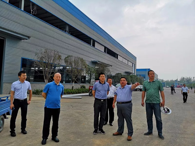 在程力集團(tuán)總經(jīng)理程阿羅(右二)、副總經(jīng)朱武(右一)的陪同下,左永祥**(左三)一行參觀了曾都高新區(qū)程力商用車工業(yè)園生產(chǎn)基地。