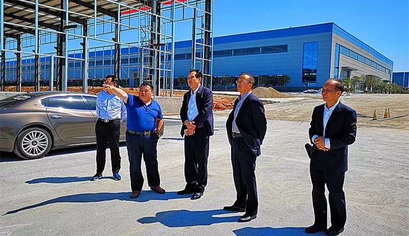 省**統(tǒng) 部副部長、黨組書王兆民(中),省工商聯(lián)副羅紹友(右),在程力汽車工業(yè)園商用車生產(chǎn)基地二期工程施工現(xiàn)場,認(rèn)真聽取省工商聯(lián)副會長、程力汽車集團(tuán)股份有限公司總經(jīng)理程阿羅(左)匯報施工建設(shè)情況。