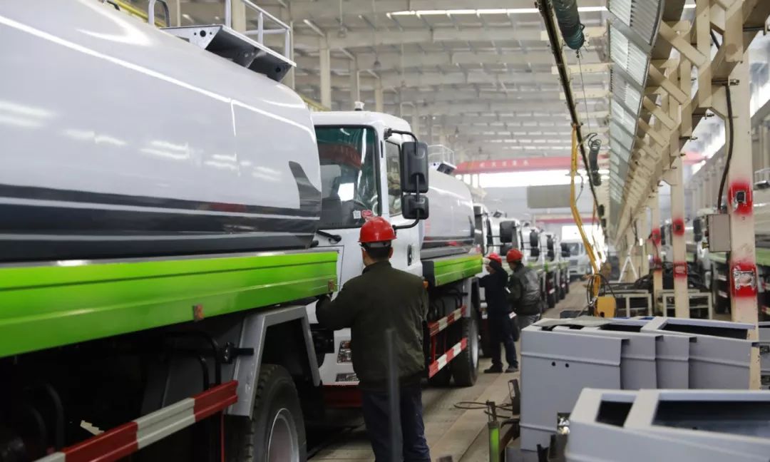 正月初七,程力環(huán)衛(wèi)標(biāo)準(zhǔn)化車間流水線上一輛輛嶄新的灑水車陸續(xù)下線,200臺環(huán)衛(wèi)車相繼發(fā)貨。