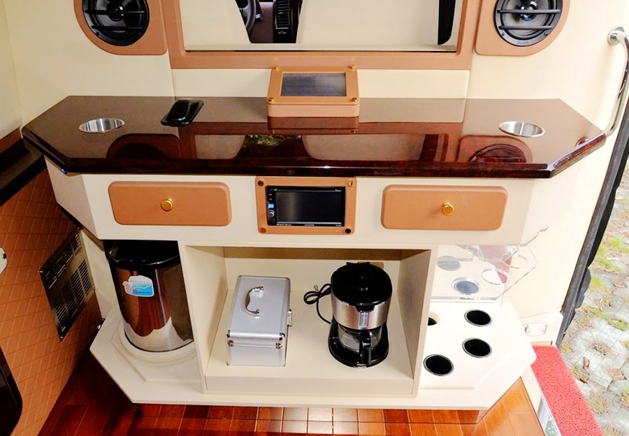 | 雙電瓶隔離器、電磁閥開關(guān)總成、32A漏電保護器 | 卡座處加裝酒柜 | ||