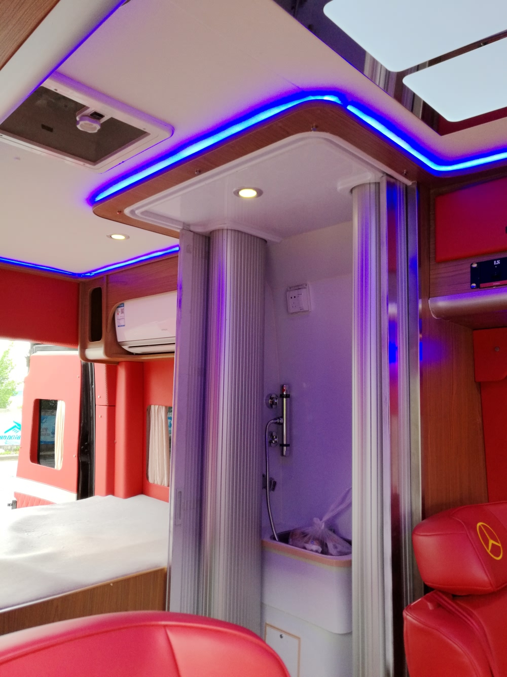 | 雙電瓶隔離器、電磁閥開關(guān)總成、32A漏電保護(hù)器 | 卡座處加裝酒柜 | ||