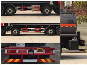 | 其他 | 該車適用于危險(xiǎn)品運(yùn)輸。類項(xiàng)號:8;罐體有效容積:17.5立方米,可選裝襯塑工藝;罐體外形尺寸(長×直徑)(mm):8200XΦ1800(襯塑時(shí));罐體外形尺寸(長×直徑)(mm):8000XΦ1700(不襯塑時(shí))。防護(hù)材料:Q23碳鋼,連接方式:左右側(cè)面及后下部防護(hù)均采用焊接連接,后部防護(hù)斷面尺寸(mm):100×50,后部防護(hù)離地高度(mm):475。僅采用底盤子午線輪胎和帶ABS的底盤; 該車前輪安裝盤式制動器,前置排氣管,裝配限速裝置,限速80km/h。安裝帶有衛(wèi)星定位功能的行駛記錄儀。ABS系統(tǒng)生產(chǎn)廠家:東風(fēng)電子科技股份有限公司,東風(fēng)電子科技股份有限公司汽車制動系統(tǒng)公司,型號:3550X-1010,DETC-ABS-4S/4M。發(fā)動機(jī)油耗對應(yīng)關(guān)系(L/100km):40.49(YC6A270-50)。隨底盤選裝同系列平頂駕駛室。整車長/軸距/后懸(mm)對應(yīng)關(guān)系為:10940/1850+4200+1300/2090。危險(xiǎn)貨物運(yùn)輸車輛的類型(AT型車輛)。 | ||