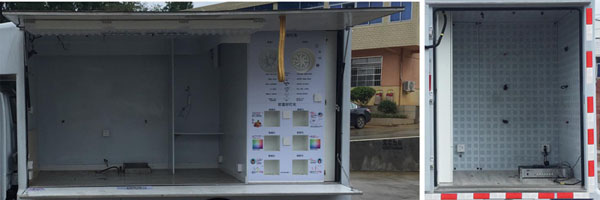 | 其他 | 該車是用于廣告宣傳和科普宣傳的專用車輛,車廂內(nèi)裝有發(fā)電機(jī)、工控電腦、功放、音響等宣傳設(shè)備.專用裝置為LED屏;該車采用軸距(mm)3000,2800;左右后三側(cè)均可選裝LED屏或密封廂體,或LED升降屏,滾軸燈箱,條屏,活動舞臺;側(cè)展式售貨式窗口;后部選裝百葉窗,后開門;前部選裝通風(fēng)口或不加裝LED條屏; | ||