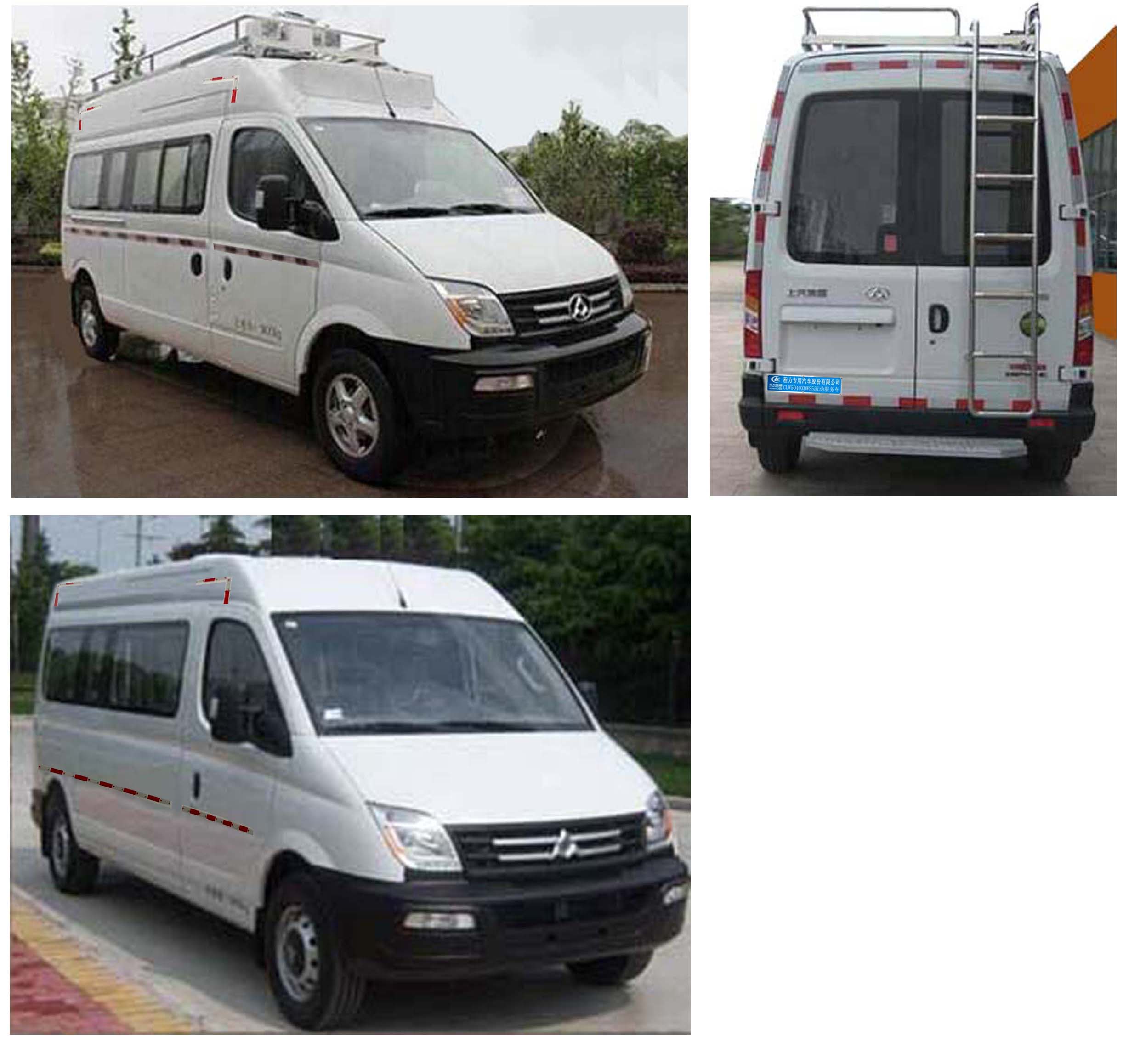 | 其他 | 該車配備流動(dòng)服務(wù)專用設(shè)備,裝備工作臺(tái),工具箱等流動(dòng)服務(wù)專用設(shè)備;隨底盤選裝中頂,車頂不選裝設(shè)備時(shí)整車高度(mm):2552高頂),2345(中頂);選裝換氣扇,喇叭整車高為(mm):2680(高頂),2470(中頂);選裝車頂平臺(tái),倒伏式照明燈,整車高為(mm):2750(高頂),2552(中頂);選裝頂置空調(diào)整車高為(mm):2810(高頂),2600(中頂),選裝頂置空調(diào),云臺(tái)攝像機(jī)整車高為(mm):2900(高頂),2750(中頂); 該選裝后踏步,后爬梯時(shí)整車長(zhǎng)為(mm):5910;隨底盤選裝一體式后踏步時(shí)整車長(zhǎng)度(mm):5785;ABS生產(chǎn)企業(yè):博世汽車部件(蘇州)有限公司,博世汽車部件(蘇州)有限公司,ABS型號(hào):ABS 9.0,ESP9。 | ||