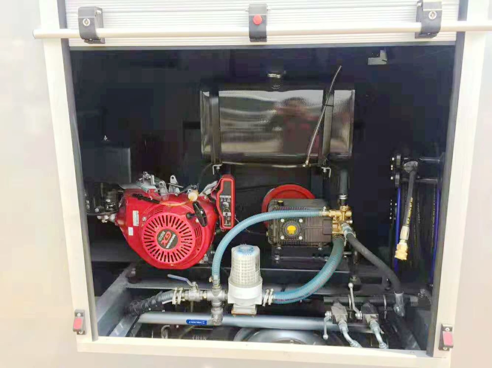 長安小型路面清洗車采用進口高壓泵機組,高壓水泵由獨立機組機驅(qū)動,與底盤行車系統(tǒng)互不干涉。高壓清洗機系統(tǒng)采用進口原裝的高壓水泵,高壓力小流量,進口狹縫噴嘴,射流水壓力大流量可控,可延長連續(xù)作業(yè)時間,較高壓力可達150bar,流量達48L/min;副發(fā)采用知名品牌本田汽油機。前噴水架清洗寬度達1.5米。作業(yè)時,系統(tǒng)水壓可到8MPa。