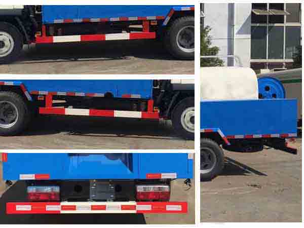 | 其他 | 罐體有效容積:3.95立方米.運輸介質(zhì): 水,密度:1000千克/立方米.罐體為矩圓形外形尺寸(長/長軸/短軸)(mm):2500(實際長3500,其中前部1000用于安裝高壓水泵用)/1650/1150.該車用于清洗作業(yè),專用裝置為:高壓水泵及罐體.防護(hù)材料:Q235碳鋼,連接方式:左右側(cè)面及后下部防護(hù)均采用焊接連接,后部防護(hù)斷面尺寸(mm):100×50,后部防護(hù)離地高度(mm):450.ABS型號:J ABS;ABS生產(chǎn)廠家:焦作博瑞克控制技術(shù)有限公司.隨底盤選裝駕駛室. | ||