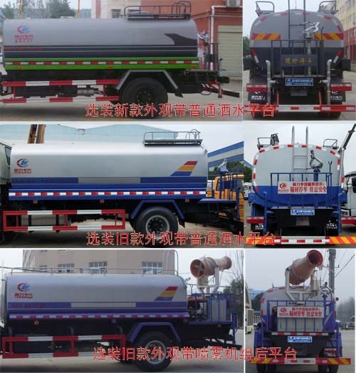 | 其他 | 1.罐體有效容積:8.76立方米.罐體外形尺寸(長×長軸×短軸)(mm):4200×2150×1420。2.側(cè)后防護(hù)所用材料均為:Q235B碳鋼;連接方式均為:焊接連接;后防護(hù)斷面尺寸(寬×高)(mm):50×120;后防護(hù)離地高度(mm):470。3.安裝具有衛(wèi)星定位功能的行駛記錄儀。4.ABS系統(tǒng)生產(chǎn)廠家:西安正昌電子有限責(zé)任公司,型號:ZQFB-V。5.隨底盤選裝同系列排半駕駛室。6.專用裝置:罐體,主要用于園林綠化和灑水。7.可選裝新款外觀帶普通灑水平臺,舊款外觀帶普通灑水平臺,舊款外觀帶噴霧機(jī)組后平臺。 | ||