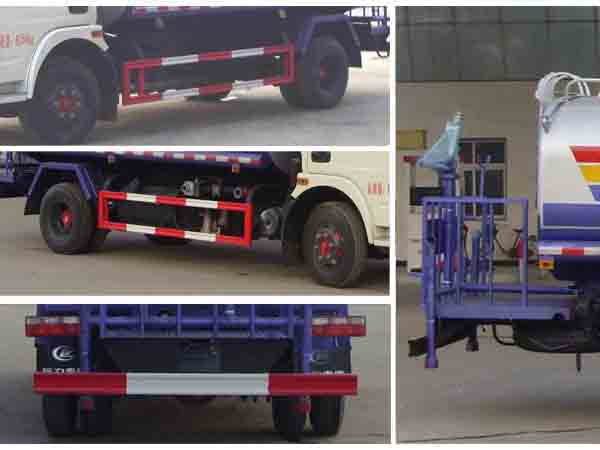| 其他 | 隨底盤選裝駕駛室。該車僅選用3800mm軸距底盤改裝,罐體有效容積:5.25立方米;罐體外形尺寸(長/長軸/短軸)(mm):4200/1600/1100。防護材料:Q23碳鋼,連接方式:左右側(cè)面及后下部防護均采用焊接連接,后部防護斷面尺寸(mm):120×50,后部防護離地高度(mm):500。ABS型號為3631010-C2000,生產(chǎn)廠家為東科克諾爾商用車制動系統(tǒng)(十堰)有限公司。專用裝置:罐體,主要用于園林綠化及灑水。 | ||