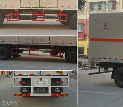 | 其他 | 該車適用于運輸危險品。隨底盤選裝駕駛室。選裝右側(cè)箱體不開門,選裝側(cè)門型式及位置,廂體顏色可變化,文字噴涂位置可變化。廂體頂部封閉,不可開啟。選裝不帶側(cè)門的車寬度為2500mm。僅采用底盤子午線輪胎和帶ABS的底盤,該車前輪安裝盤式制動器,前置排氣管,裝配限速裝置,限速80km/h。當(dāng)前懸為1515(mm)時,整車長/軸距/后懸對應(yīng)關(guān)系為(mm):11995/2150+5150/3180,11995/1950+5350/3180,11160/1950+4250/3445,11160/1950+4550/3145,10665/1950+3600/3600,11160/1950+4950/2745。安裝帶有衛(wèi)星定位功能的行駛記錄儀。安全裝置為導(dǎo)靜電帶,用于防止靜電。該車主要用于運輸獨立容器包裝的易燃?xì)怏w:液化石油氣,原油氣,壓縮天然氣,乙炔,甲烷,乙烷,丙烷,丁烷,丙烯,丁烯,二甲醚,硫化氫,打火機(jī)或打火機(jī)加油器(裝有易燃?xì)怏w),壓縮氫,類項號:2.1;運輸具有獨立容器包裝的非易燃?xì)怏w:液化氣體(非易燃,充有氮,二氧化碳或空氣),壓縮氧(氮,空氣,氦,氬,氖),二氧化碳,類項號2.2;側(cè)防護(hù)和后防護(hù)裝置材料材質(zhì)為Q23碳鋼,側(cè)防護(hù)與箱體底部焊接連接,后防護(hù)裝置與車架采用焊接連接。后防護(hù)截面尺寸(mm):100×40,離地高度為440mm。發(fā)動機(jī)ISD210 50,YC6J220-52對應(yīng)的油耗值分別為:34.6,34.9。前輪距采用1940/1940,1933/1933,1964/1964(mm),后輪距采用1860(mm)。僅采用ABS生產(chǎn)廠家: 東科克諾爾商用車制動系統(tǒng)(十堰)有限公司;型號:3631010-C2000。 | ||