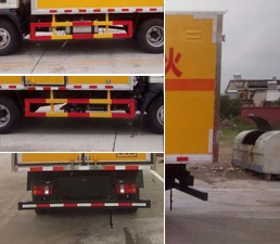 | 其他 | 該車適用于運輸危險品。廂體頂部封閉,不可開啟。選裝右側(cè)箱體不開門,選裝側(cè)門型式及位置。整車長/軸距/后懸對應(yīng)關(guān)系為(mm):5995/3280/1555,5995/3160/1675。僅采用底盤子午線輪胎和帶ABS的底盤,該車前輪安裝盤式制動器,前置排氣管,裝配限速裝置,限速79km/h。安裝帶有衛(wèi)星定位功能的行駛記錄儀。安全裝置為導(dǎo)靜電帶,用于防止靜電。該車運輸具有獨立容器(瓶)包裝的易燃氣體:液化石油氣,壓縮天然氣,乙炔,乙烷,丙烷,丁烷,異丁烷,丁烯,甲烷,丙烯,環(huán)丁烷,丙二烯,甲乙醚,打火機或打火機加油器(裝有易燃氣體),氫。運送危險品類項號為2.1。側(cè)防護和后防護裝置材料材質(zhì)為Q23碳鋼,側(cè)防護與箱體底部焊接連接,后防護裝置與車架采用焊接連接。后防護截面尺寸(mm):100×50,離地高度為520mm。采用發(fā)動機型號YN27CRE1,YN38CRE1,CY4BK151,JE493ZLQ5,D25TCIE1,D25TCIE3對應(yīng)油耗值分別為油耗 (L/100km):11.2,11.6,12.0,11.4,12.0,12.0。ABS系統(tǒng)型號為XH-KQ4S4M-E01,生產(chǎn)企業(yè)為廣州市西合汽車電子裝備有限公司。 | ||